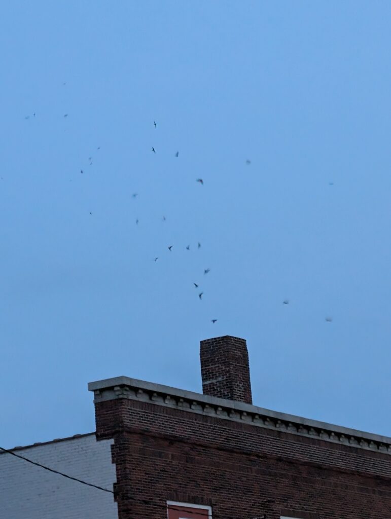 A group of 10 birders participated in the annual Chimney Swift Sit, or Swift Night Out, in Cold Spring on August 7th, 2025. We were rewarded with a cooperative group of swifts that utilize the chimney on the Wenner Hardware building as a communal roost.